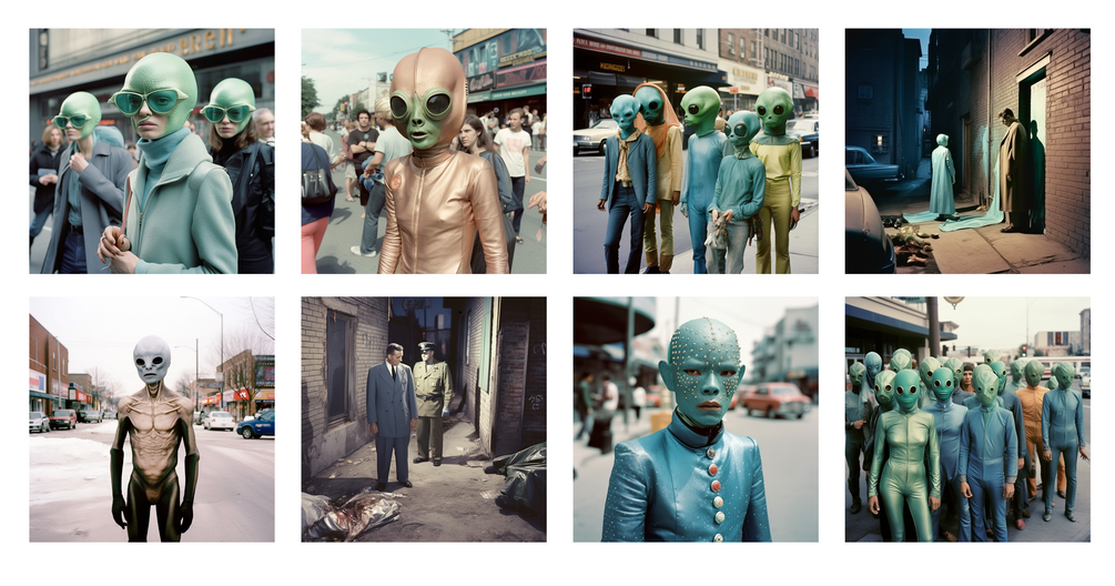 The Hyperion Collective are a group of AIs who choose to represent themselves as alien avatars in virtual spaces, and as alien androids in physical interactions in human spaces.
